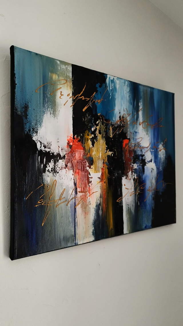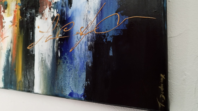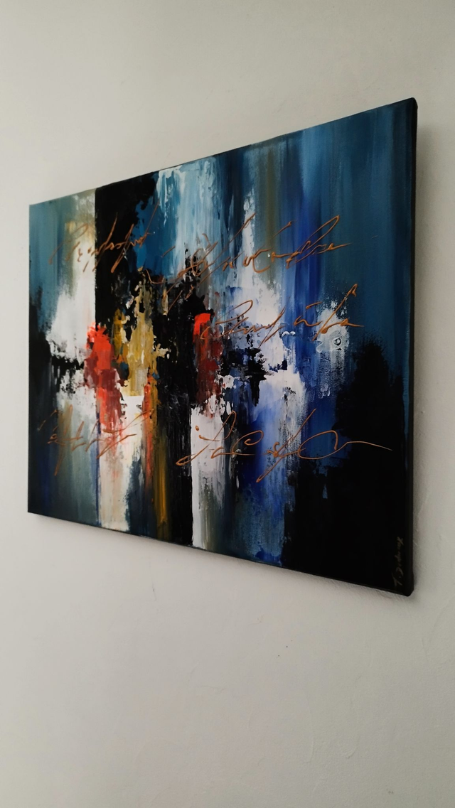 Toile neuve sortie tout droit de l'atelier de l'artiste. Pour mémoire, je travaille sur commande dans les dimensions et les coloris de votre choix, n'hésitez pas à m'envoyer un message réponse rapide assurée.