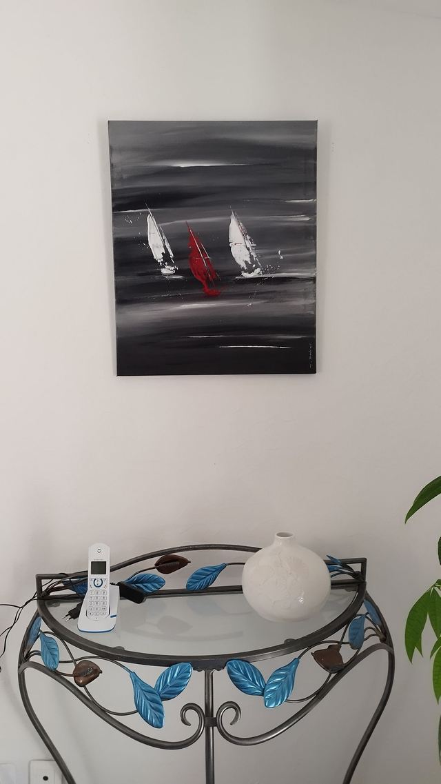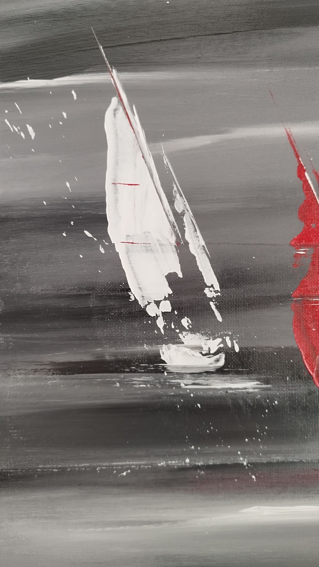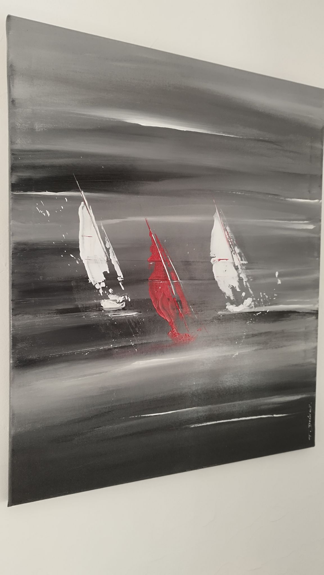 Art contemporain tableau peinture toile œuvre d'art originale bateaux voiliers