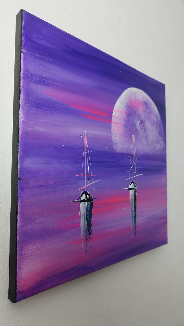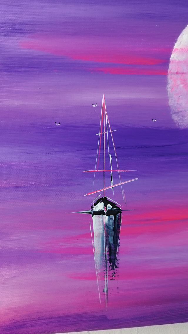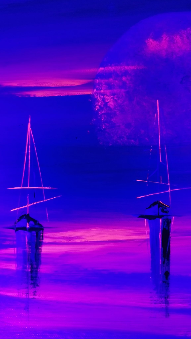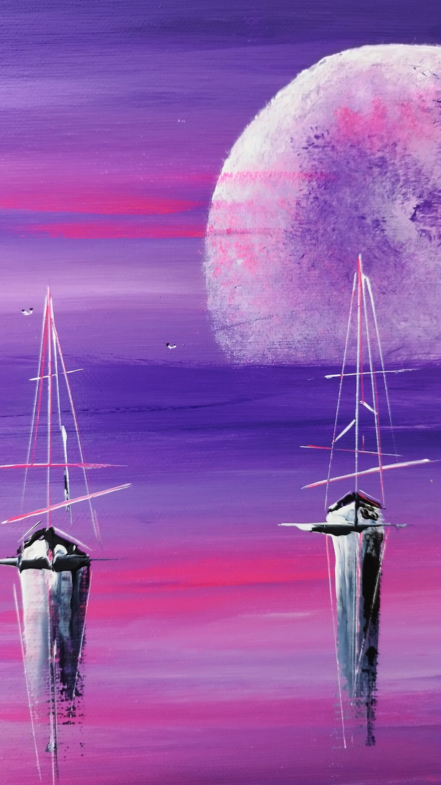 Art contemporain tableau toile œuvre d'art originale bateaux voiliers fluo