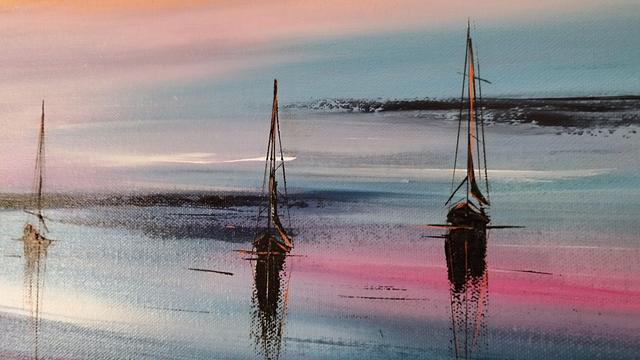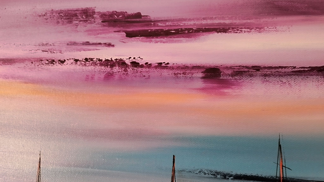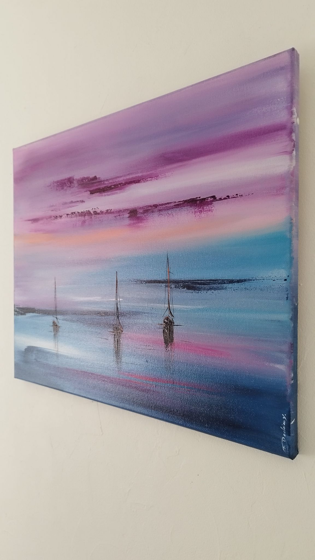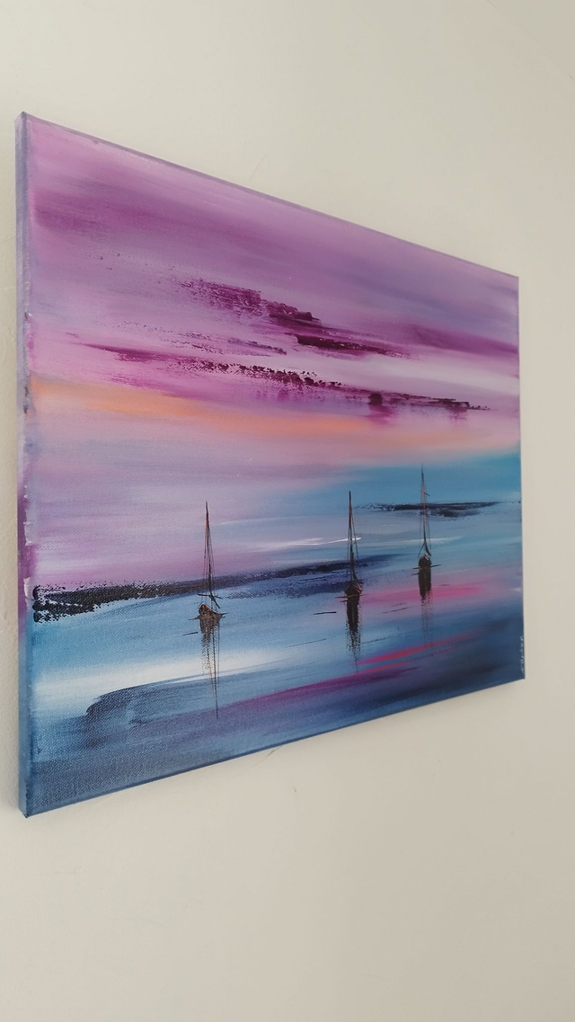 Dimensions de l'œuvre 40 cm x 50 cm sur châssis bois. Des couleurs douces et chatoyantes, des contrastes élevés, l'harmonie des couleurs et l'émotion à faire partager, c'est ce que je recherche dans ma peinture.