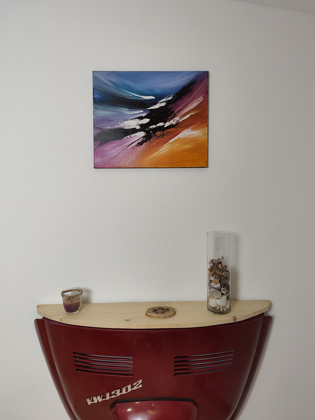 Toile neuve sortie tout droit de l'atelier de l'artiste. Pour mémoire, je travaille sur commande dans les dimensions et les coloris de votre choix, n'hésitez pas à m'envoyer un message réponse rapide assurée.