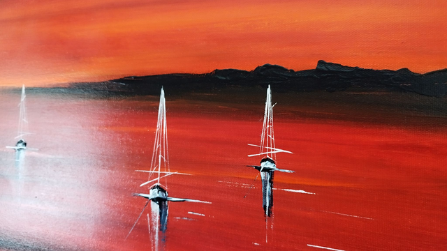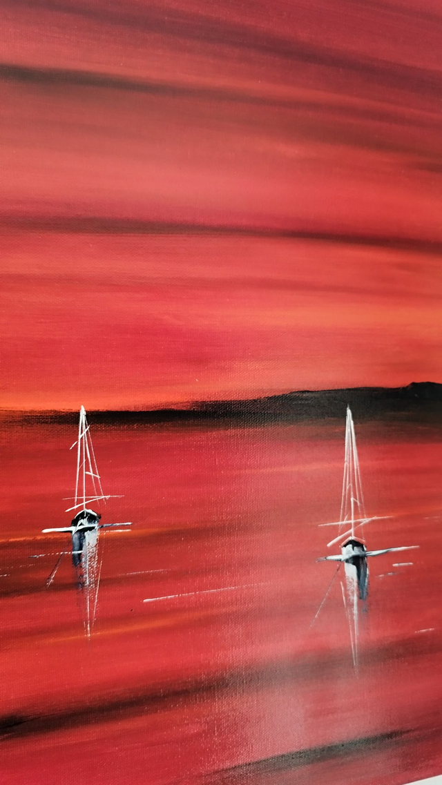 tableau abstrait coloré œuvre d'art originale signée - voiliers bateaux marine