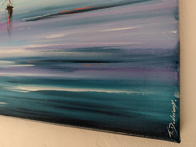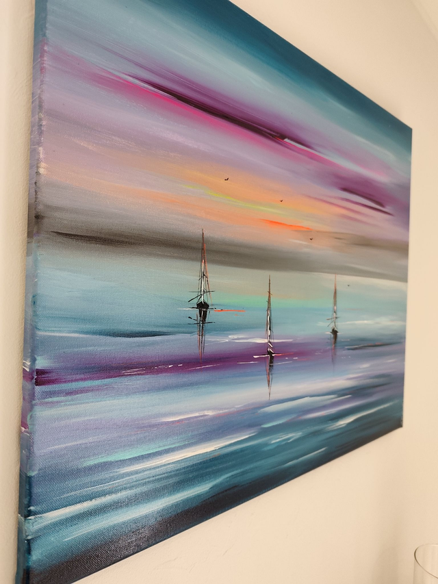 Cette oeuvre saura trouver sa place dans un intérieur contemporain ou même plus classique. L'harmonie des couleurs et l'émotion à faire partager, c'est ce que je recherche dans ma peinture.