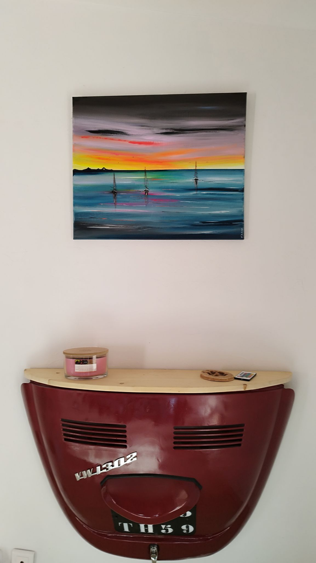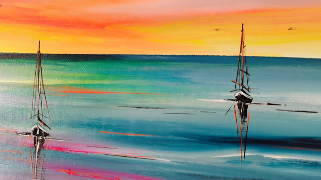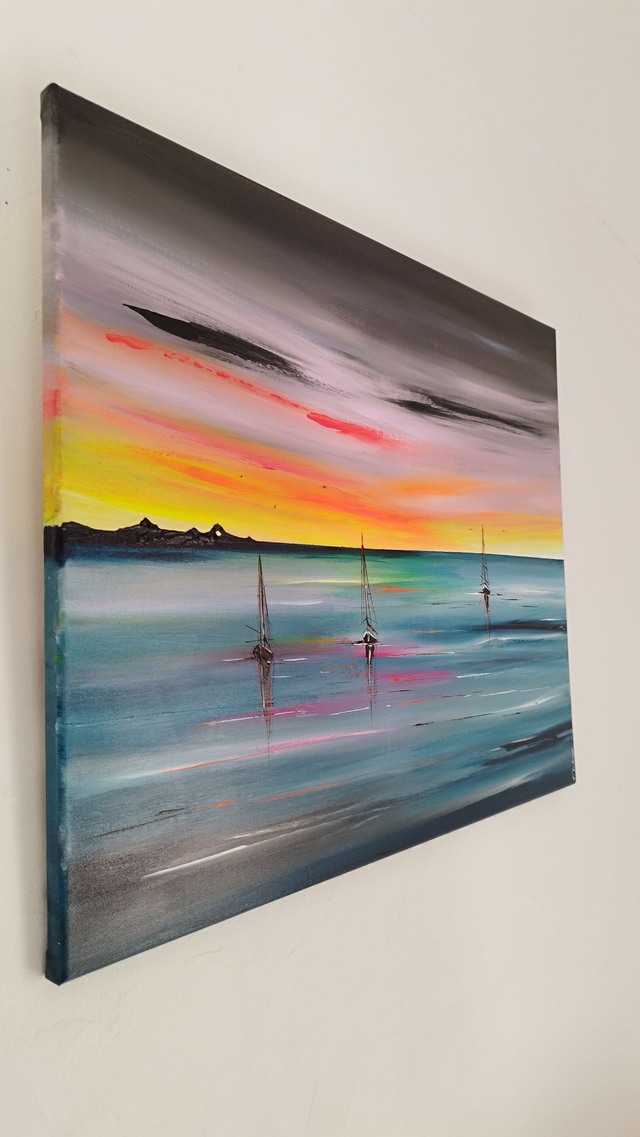 tableau Moderne abstrait - art contemporain - marine colorée bateaux voiliers