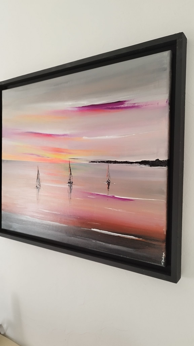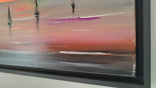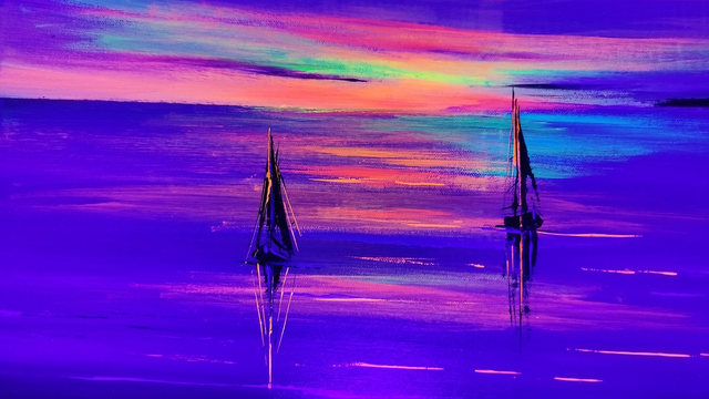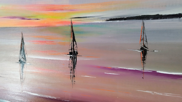 tableau Moderne abstrait - art contemporain - marine colorée bateaux voiliers