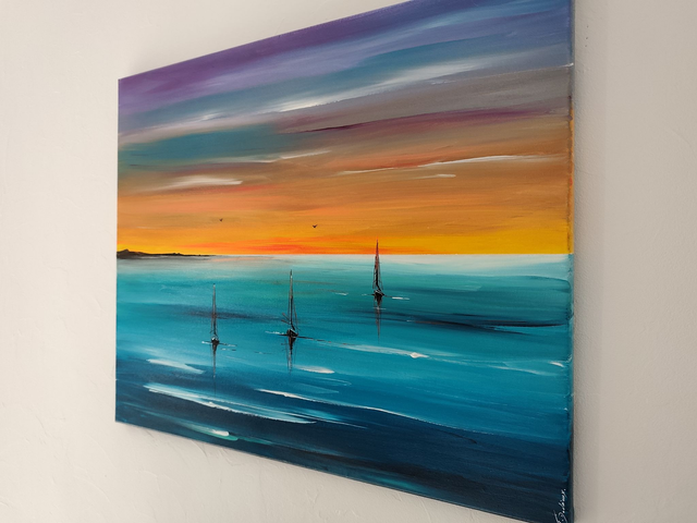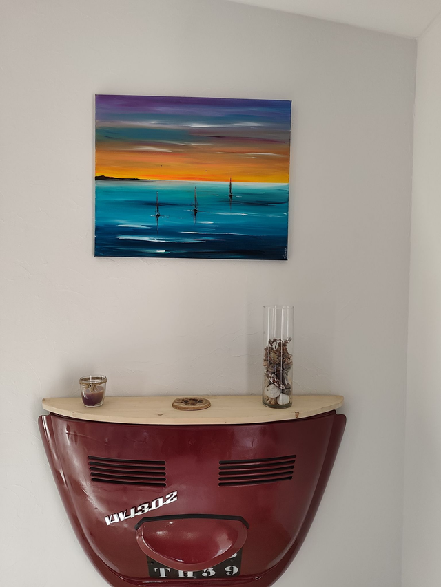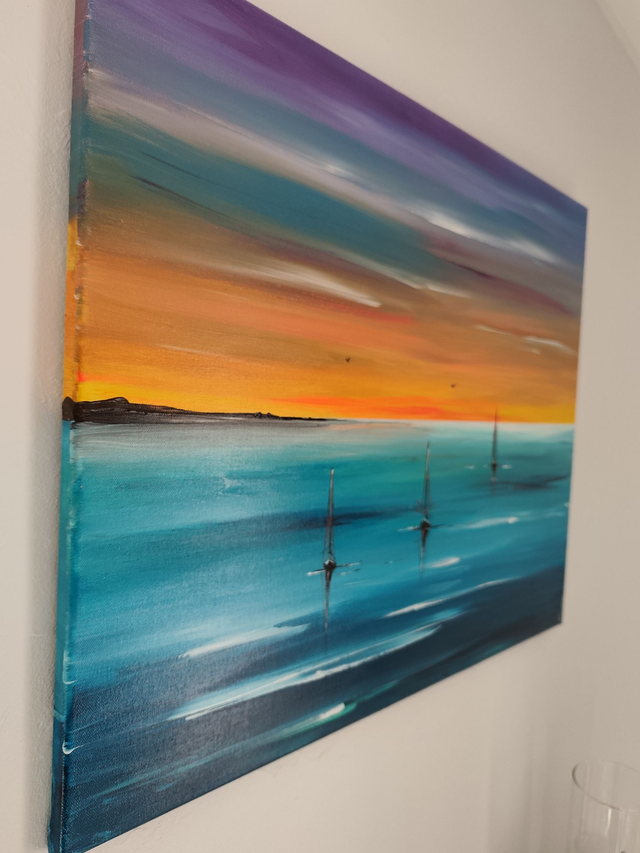 Cette oeuvre saura trouver sa place dans un intérieur contemporain ou même plus classique. L'harmonie des couleurs et l'émotion à faire partager, c'est ce que je recherche dans ma peinture.
