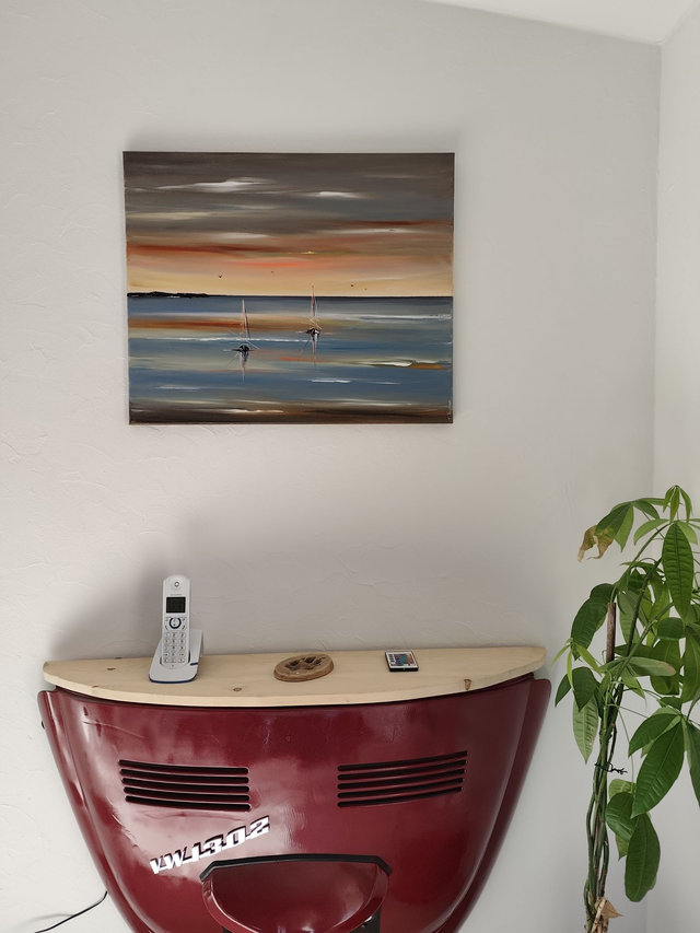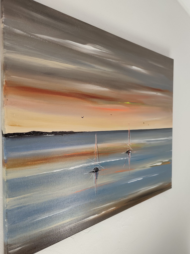 Cette oeuvre saura trouver sa place dans un intérieur contemporain ou même plus classique. L'harmonie des couleurs et l'émotion à faire partager, c'est ce que je recherche dans ma peinture.