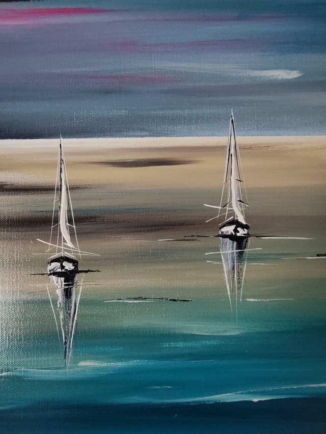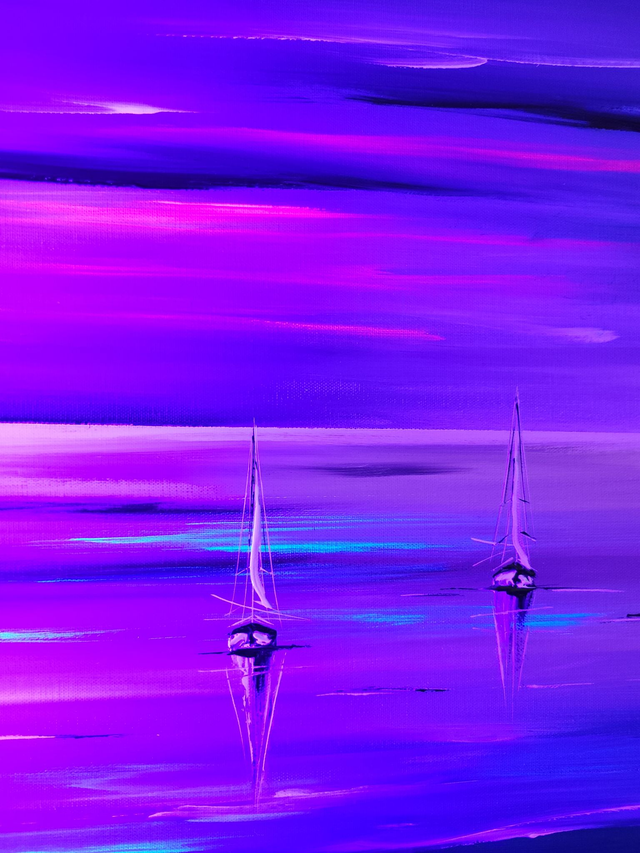 tableau Moderne art contemporain - marine colorée bateaux voiliers - fluo