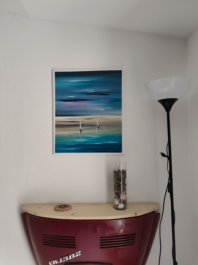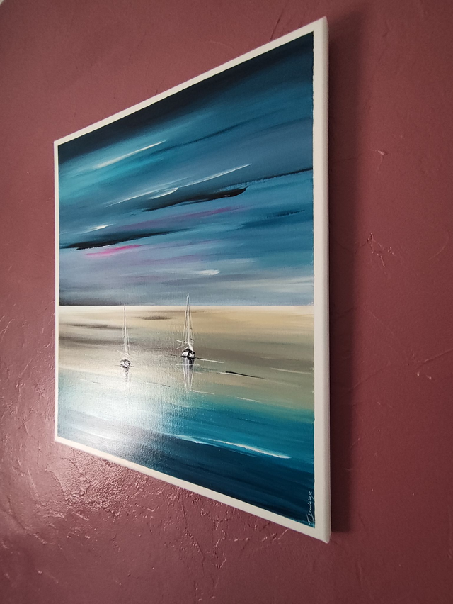 Cette oeuvre saura trouver sa place dans un intérieur contemporain ou même plus classique. L'harmonie des couleurs et l'émotion à faire partager, c'est ce que je recherche dans ma peinture.
